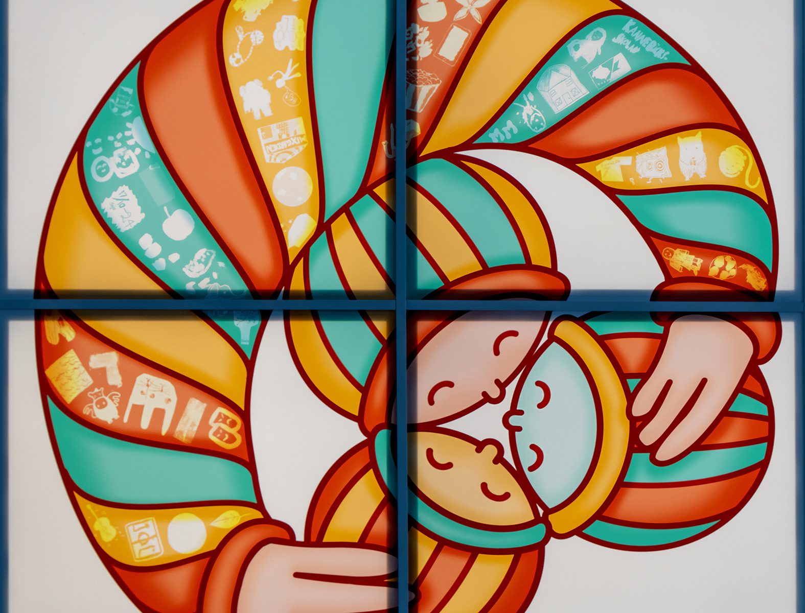 – Den övergripande känslan som jag fick när jag var på Kannebäcksskolan var en av värme och inkludering, där alla hör till och där det finns tid och plats för allt man kan vara och göra. Jag ville på något sätt använda det som ett tema i mitt verk. Att göra mysigheten i skolan synlig för alla besökare, säger konstnären Ea ten Kate.