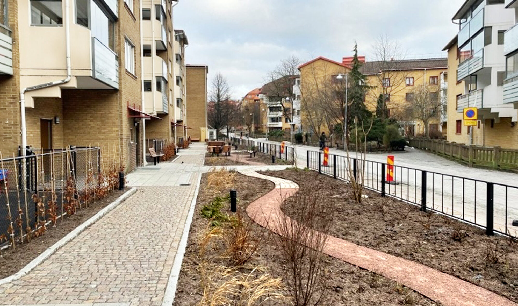 Poseidon har gjort dräneringsarbeten och rustat upp utemiljön vid Olskroksgatan 4–18. En ny konstgestaltning skulle kunna tillföra ytterligare kvaliteter till boendemiljön – trots ett centralt läge i staden har området få konstgestaltningar.